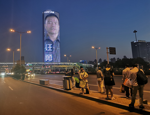 文峰中心是合肥地标级写字楼,高200米,共48层,当天晚上6点半至10点半,楼体大屏共点亮45次。提前看了活动预告,安徽大学团委书记高贵和特意从家步行40分钟来到现场观看。他告诉中青报·中青网记者,这样的活动有创意,向社会宣扬当代青年的责任担当,很有意义,值得大力推广。