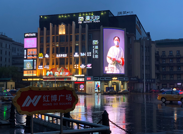 今天,从南到北,从东至西,不同城市不同位置的“城市之窗”展示着最美的肖像,接受着人们的致敬。北京三里屯的繁华商业街区,通盈大厦楼体“城市之窗”大屏幕在不停地播放起战“疫”青年的肖像。同样在哈尔滨市中心的“567漫天地购物中心”,尽管持续下雨,19米长电子大屏仍然从早到晚、循环放映着战“疫”青年肖像。