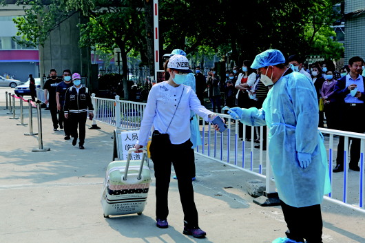 当天下午3点,齐鲁晚报·齐鲁壹点在山东财经大学舜耕校区看到,学校西门的南北两侧分别设置了两个步行通道入口。在安保人员的引导下,记者分别通过信息登记处、消毒处、体温测量处三个“关卡”,才得以进入校园。