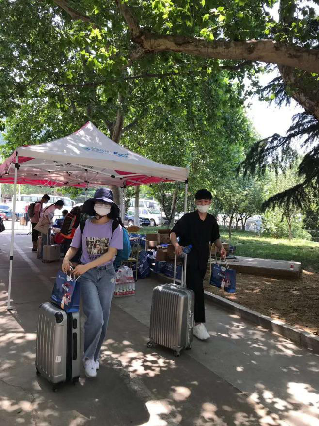从家里动身之前,他们已经接到了辅导员老师发来的“返校宝典”,需要做哪些准备、带啥物品、乘车防护须知等等,事无巨细,甚至有些婆婆妈妈……无论是省外学生还是省内学生,不论是乘坐火车、汽车还是飞机,他们一出大门,一眼看到的就是工作人员举在手里的接站牌。一别数月,师生重逢,何以表达,唯有相拥。5月21日凌晨两点半左右,来自内蒙古的山财大学生小陈走出济南站时,一眼就看到辅导员赵老师在那里等待着,暖流一下子涌上心头。乘坐学校的车辆到校后,尽管旅途疲惫,尽管入校门一系列的检查检测程序复杂,但是,重回校园的激动早已抵消了一切。