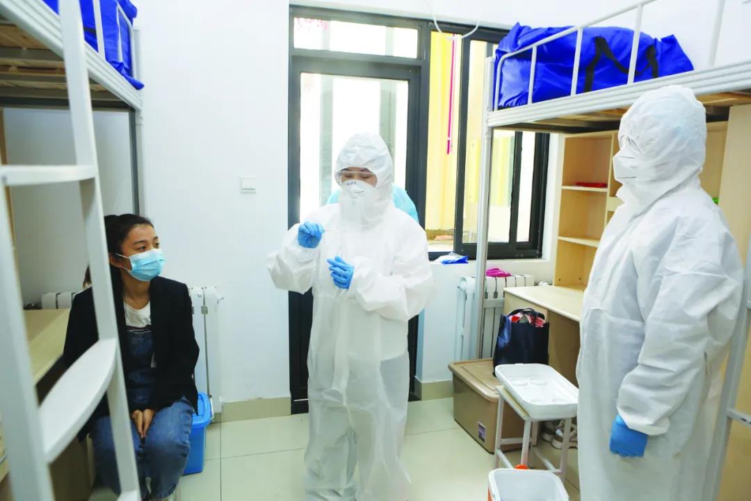 大事难事有我在。“我们的工作很琐细,就是保卫校园,守护师生平安,防火、防盗、防诈骗。学校有轮班制度,但是作为保安队伍的具体负责人,还是坚守在一线,心里更踏实。”身高一米八,从事安全保卫工作33年多的党委保卫部正科级干部朱卫总是哪里有困难,就往哪里站。席不暇暖,夜以继日,生怕哪个环节出了漏洞。“新冠肺炎疫情就是战情,防控现场就是战场。作为一名共产党员、一名退伍军人,再苦再累,我的战位我守护。”总务处正科级干部薛鹏在春节前主动请战,第一时间回到校园。校医院24小时值班,日常诊疗服务,配发防疫物资,保障校园公共场所消毒,维护师生健康。沈茵、傅爽、盛云玲主动报名参加了市中区留观点保障工作。