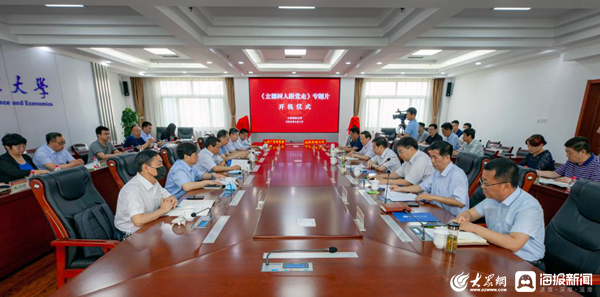 大众网教育·海报新闻讯6月5日上午,山东财经大学燕山校区七层会议室高朋满座,气氛热烈,《立德树人跟党走》专题片开机仪式在这里隆重举行。山东省委宣传部副部长孔繁轲,山东省委教育工委副书记、省教育厅党组副书记、副厅长冯继康,山东广播电视台总编辑周盛阔,共青团山东省委副书记刘少华,学校党委书记王邵军,校长赵忠秀,党委副书记赵友春,纪委书记、监察专员姜波以及新闻媒体代表等、学校职能部门相关人员出席,共同见证开机仪式。仪式由赵忠秀主持。