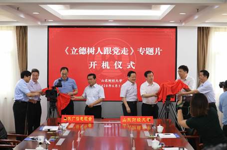 6月5日上午,山东财经大学燕山校区七层会议室高朋满座,气氛热烈,《立德树人跟党走》专题片开机仪式在这里隆重举行。山东省委宣传部副部长孔繁轲,山东省委教育工委副书记、省教育厅党组副书记、副厅长冯继康,山东广播电视台总编辑周盛阔,共青团山东省委副书记刘少华,我校党委书记王邵军,校长赵忠秀,党委副书记赵友春,纪委书记、监察专员姜波以及新闻媒体代表等、学校职能部门相关人员出席,共同见证开机仪式。仪式由赵忠秀主持。