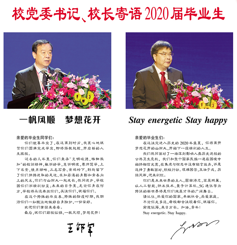在这注定进入历史的2020年盛夏,你将离开梦想花开的山财大,开始下一段精彩的人生。