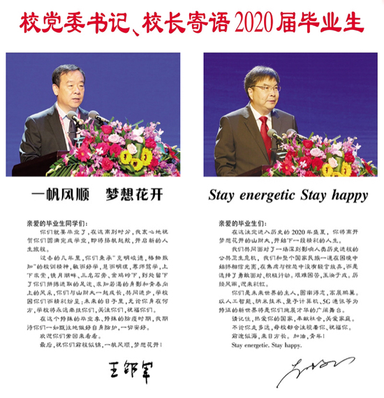 鲁网6月18日讯近日,山东财经大学党委书记王邵军和校长赵忠秀为2020届毕业生写下寄语。