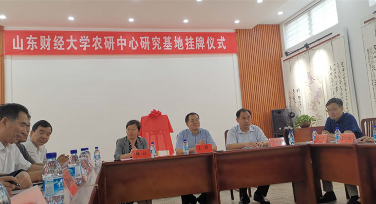 图为山财大农研中心在山东梁漱溟乡村振兴研究院基地挂牌成立现场