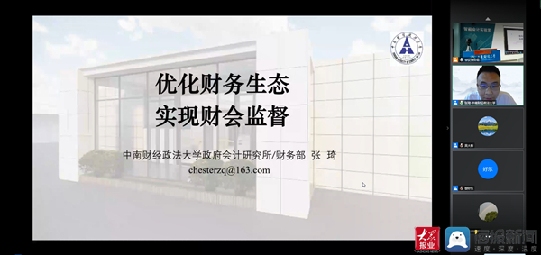 张琦教授以《优化财务生态,实现财会监督》分享了他的研究和实践成果,详细介绍了他对财会监督的内涵与外延、财会监督与其他监督的边界等问题的理解、提出了财会监督对传统财务(会计)角色(逻辑)的重构模式,最后以生态和治理的逻辑关系,分享了他在中南财经政法大学的实践经验。