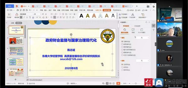 大众网教育·海报新闻讯(通讯员 韩跃 吴大新 王斌)8月7-9日,由山东财经大学会计学院和互联网+”会计发展协同创新中心共同承办,并得到财政部监督评价局、财政部山东监管局、山东省财政厅、山东省注册会计师协会、山东省资产评估协会、《中国会计报》、《财务与会计》编辑部大力支持的“新时代党和国家监督体系中的财会监督云论坛”成功举办。
