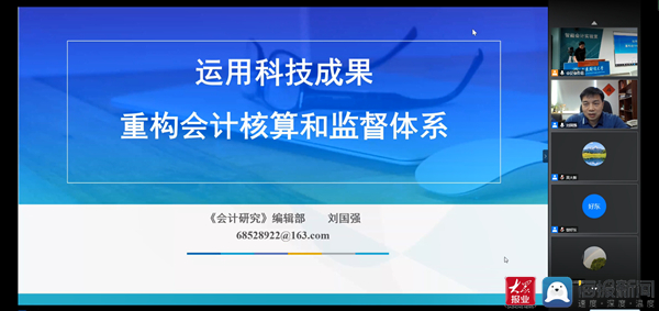刘国强主任以《运用科技成果重构会计核算和监督体系》为题做了主题发言,他以新时代、新治理、新技术为主要内容分析了当前会计理论研究的时代背景、以“大智移云物区”等新技术的发展分析了基础科学进步与会计理论创新、最后对会计核算和监督体系的重构提出了自己的观点。
