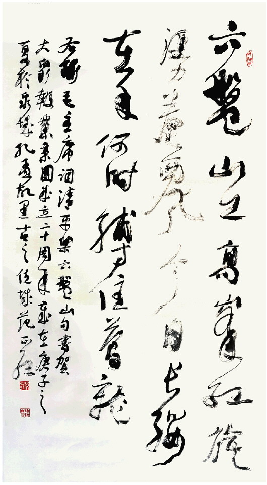 大众日报有着辉煌的历史,尤其近20年来又进一步塑造了大众报业集团的新形象。我曾经多次被大众日报推介宣传,这对我们搞艺术的人来讲是一件非常荣幸的事,因为这个宣传阵地在山东是分量极重的。大众日报一直辟有相关版块宣传书画艺术,对山东的文化艺术事业十分支持。从感情的角度来说,几十年来,大众日报为艺术家和民众搭建起了沟通与交流的桥梁,我曾经多次参加大众日报组织的艺术活动,也由此结识了许多老先生,受益良多。大众日报对文化和艺术高度重视,对艺术家充满尊敬也极尽呵护,专门成立了山东新闻书画院、山东新闻美术馆,搭建起更顺畅的沟通桥梁,为我们提供高端的平台。我也多次参加过新闻书画院的活动,感受到了这块阵地的分量。大众报业集团成立20周年之际,我衷心希望集团事业发扬光大,这对推动山东文化艺术事业的发展具有重要意义。我这次创作了一幅行草书,选取了毛泽东同志《清平乐·六盘山》的下阕,表达了我对大众日报的美好祝愿。《清平乐·六盘山》的词义很贴合现在的大众日报,它曾经走过千山万水,就像红军25000里长征一样。大众报业集团的未来十分光明美好,一定会从一个胜利走向另一个胜利。 ——范正红