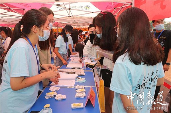 会计学院制作“梦想起航”合影墙,两扇振翅欲飞的翅膀祝愿新生乘着梦想的翅膀从财大筑梦起航;计算机科学与技术学院以院宠“财小智”为原型为新生设计制作了文创周边产品;国际教育学院通过“小小明信片,寄出梦想,放飞希望”活动让新生在开学第一天写下对未来的期许和对家人的祝福。一张张毕业生光荣榜、一面面新生签名墙,创意无限的镂空合影版,体贴周到的服务,让来自全国各地的新生梦立即融入学校、开启充满激情的校园新生活。