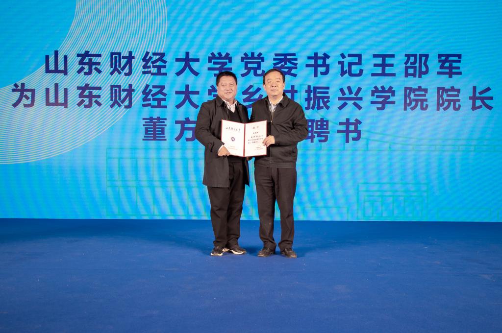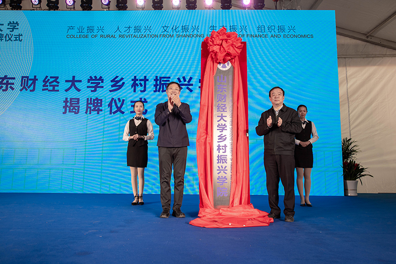 签署仪式上,马晓磊和王邵军共同为山东财经大学乡村振兴学院揭牌。