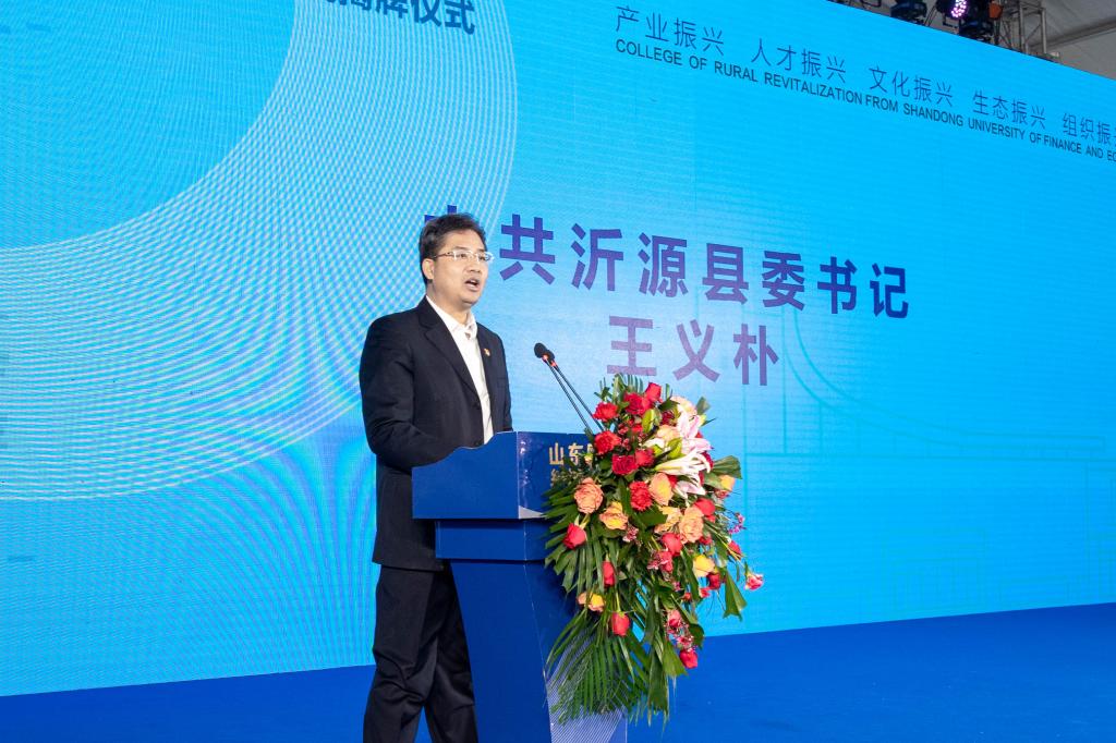 王可杰在致辞中表示,沂源县要抓住契机,大力弘扬沂蒙精神,精诚细致做好跟踪服务,与山东财经大学一起,把学院打造成高水平的政产学研服综合平台,将乡村振兴的理论研究与实践推向新高度,为乡村全面振兴提供源源不断的智力支持。