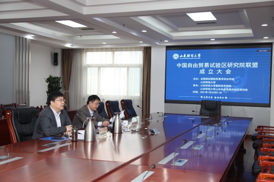 1月24日上午,中国自由贸易试验区研究院联盟成立仪式在山东财经大学举行。会议由全国高校国际贸易学科协作组和山东财经大学主办,我校山东自由贸易试验区研究院承办。校长赵忠秀主持会议。受疫情影响,此次会议以线上方式进行。
