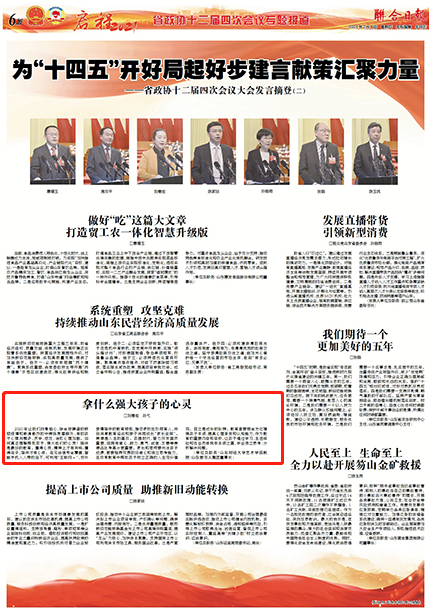 2020年让我们刻骨铭心,除全球肆虐的新冠疫情和愈演愈烈的中美贸易摩擦外,有的孩子心理问题多,厌学、逆反、消极心理加剧。如何真正理解帮助孩子、强大他们的心灵?陪伴是最好的教育。懂得心灵,精神上才有共鸣;懂得在乎,陪伴才有心疼。在无线信号全覆盖,智能手机人人带的当下,可利用“互联网+”,弥补亲情陪伴的教育短板,推动家校社协同育人,共创共享教育经验和亲子共同成长“家长空间”。美德是人生的基石。孩提时代,智力开发固然重要,但拥有爱心、毅力、勇气、诚信、友善等美德远比考高分更重要。家长和老师要关注孩子成绩,更要培养可贵的好奇心和独立思考能力,在日常教育中帮助孩子树立正确的人生观价值观。自立是成长的阶梯。教育者要把全方位增强孩子本领、提高心理承受和认知能力,作为教育的重要内容和目标,让孩子通过学习、生活体验和社会历练筑牢本领之基,学会独立思考、分析解决问题。