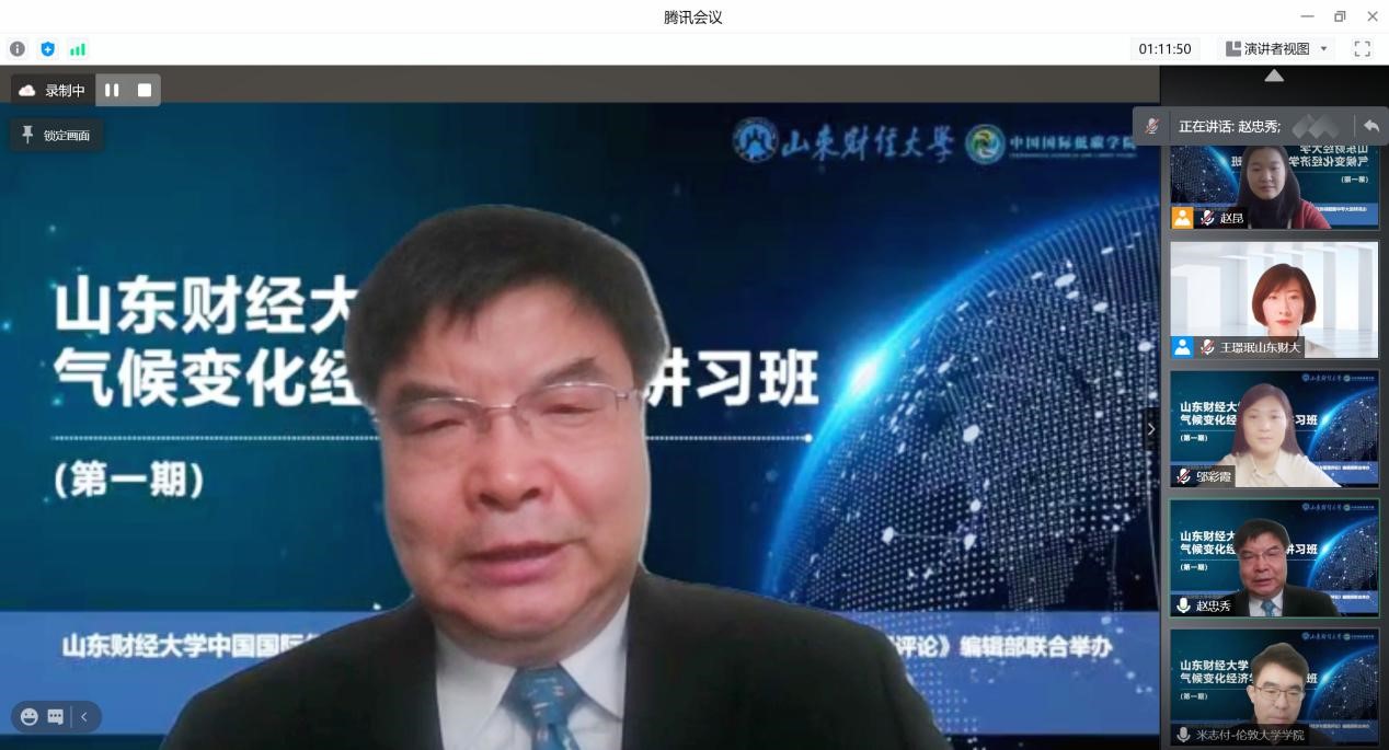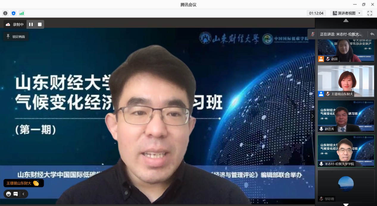 2月17日,由山东财经大学中国国际低碳学院等单位主办的首届气候变化经济学师资讲习班于云端正式开讲。此次培训共有16讲内容,主要包括气候变化经济学理论及实务等,注重理论讲授和学术前沿,致力于提升教师教学与科研水平,构建校内外低碳经济学术圈,预计于5月8日结束。