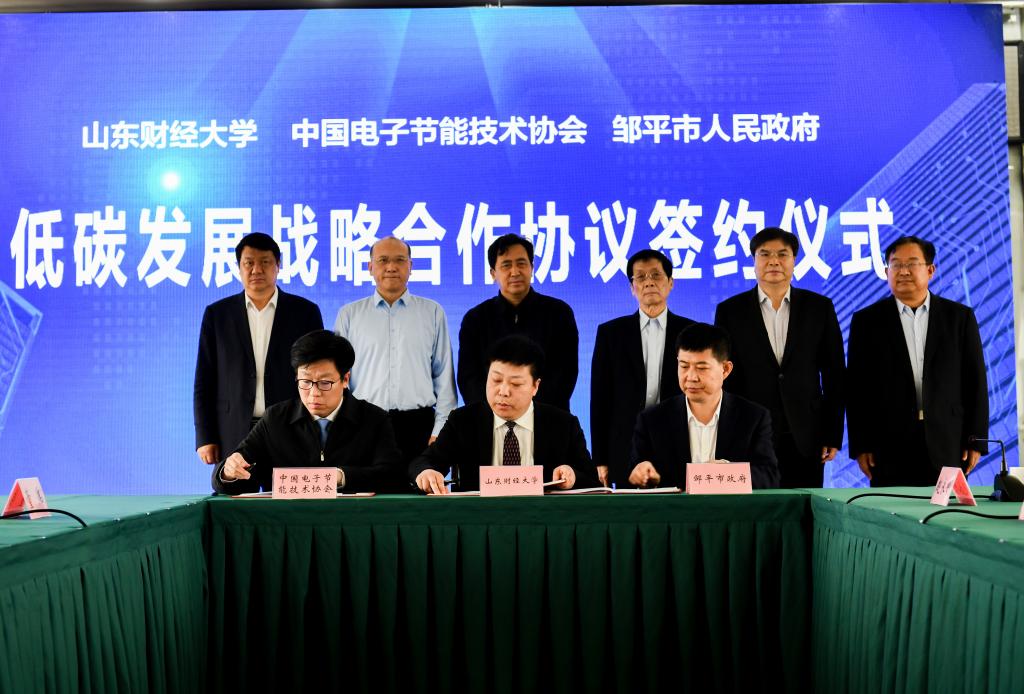 根据山东财经大学与中国电子节能技术协会、邹平市人民政府低碳战略合作协议,中国国际低碳学院将与邹平市共建低碳发展与人才培养基地,围绕低碳领域的重大理论政策与实践问题开展研究,推动产学结合、校企合作,促进低碳领域国际交流合作,制定推广低碳认证标准。精准对接服务邹平市低碳发展需求,三方共建系统节能技术中心和实验室,吸引培育人才,加大技术产业化应用,推动相关行业科技进步和新兴产业发展。