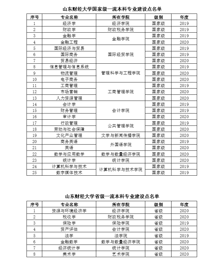 为统筹优化专业布局,建设优势专业,除了着力促进“新文科+新工科”新兴专业纵深发展,山东财经大学还探索推动艺术金融等新文科专业交叉融汇,积极抢占智能会计、金融大数据等“数字财经”专业未来风口。同时,学校优势专业建设进程加快,根据教育部日前发布的2020年度国家级和省级一流本科专业建设点名单,山东财经大学金融工程、贸易经济、物流管理等12个专业获批国家级一流本科专业建设点,资源与环境经济学、税收学、资产评估等6个专业获批省级一流本科专业建设点。