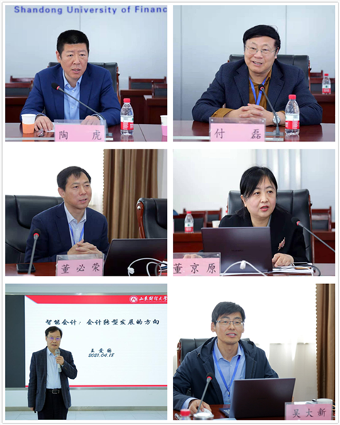 随后,中国会计学会会计史专业委员会主任、首都经济贸易大学付磊教授、南京审计大学副校长董必荣教授、山西财政税务专科学校教务处处长董京原教授、我校会计学院吴大新副教授分别就会计史课程思政建设作报告。吴大新提出了《会计与社会发展史:课程思政视角》的具体设计方案。就吴大新提出的方案,与会学者展开热烈讨论。付磊、我校会计学院院长王爱国教授、国家社科基金重大项目首席专家、北京晋商博物馆馆长、山西大学孟伟教授、中国会计学会会计史专业委员会副主任、天津财经大学韩传模教授、中南财经政法大学康均副教授、湖南大学陈敏副教授、对外经贸大学刘江宁研究员等分别发言。期间,王爱国和我校会计学院牛艳芳教授结合课程思政向与会专家学者详细介绍了我院智能会计专业建设探索与发展情况。与会专家表示,课程思政是新时代高校立德树人的战略举措,山东财经大学会计史课程思政建设站位高、措施实、固本溯源、着眼长远,具有很好的借鉴意义。