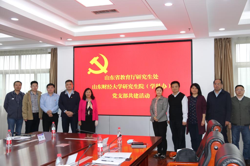 4月21日下午,山东省教育厅研究生处党支部与山东财经大学研究生院(学科办)党支部举办联合共建活动,共同学习党史,开展专题讨论。山东省委党校教授、山东省中共党史学会副秘书长杨明清讲授专题党课。副校长陈晓兰出席活动。
