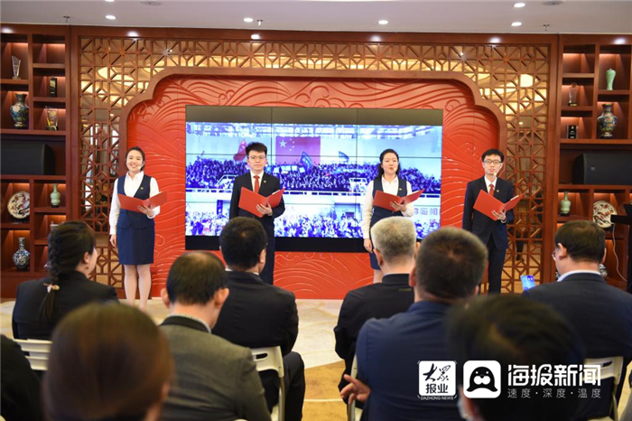 本次活动正值五四青年节来临之际,廖瑾与大家分享了四川甘孜理塘旅游形象大使丁真,北京银行济南分行形象代言人、我校2015届毕业生吴妮星的青年故事,并发布了“青年人才发展计划(YTDP)”,希望双方资源共享、优势互补,共同培养优秀青年。毕业于山财大的四位青年员工唐潇、吴妮星、唐浩、姜亚南以校歌《梦想花开》为主题创作的诗歌朗诵,带领大家重新回到了母校,重温近70年的办学历史和“克明峻德、格物致知”的校训精神,体现了校友的母校深情。此外,我校青年校友企业家代表、北京银行济南分行青年员工还进行了深入的交流座谈。