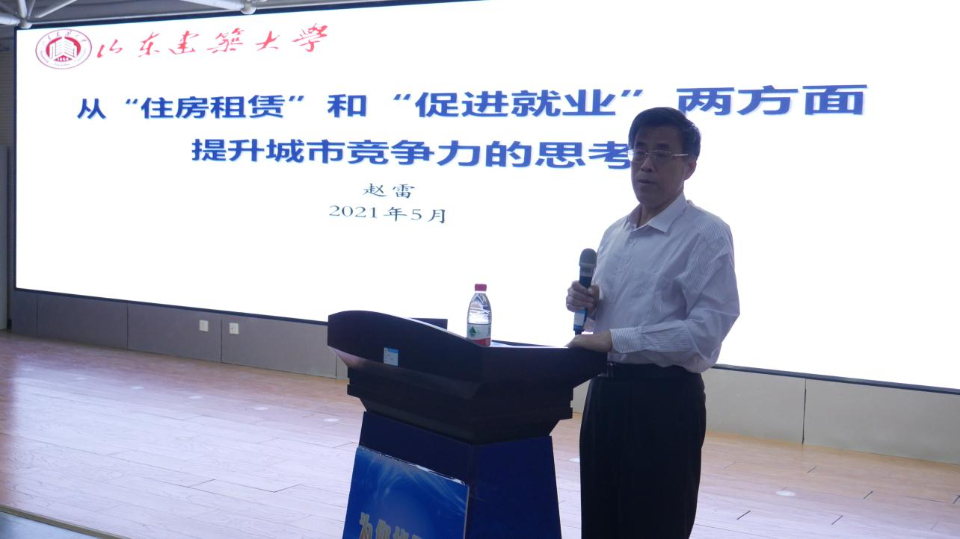 会议现场,山东建筑大学管理工程学院原副院长、第五届山东省房地产业协会会长赵雷教授做了“如何从住房租赁和促进就业提升城市竞争力”的专题分享。赵教授讲到,“如何提升城市竞争力”是当今的热点话题之一,而加强“住房租赁服务”、“促进就业”对于提升城市竞争力非常重要,只有居住和就业问题解决了,才能安居乐业,留住人才。
