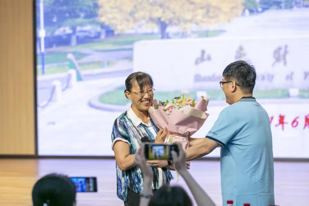 电影首映前,周星代表1987级财政专业学生向辅导员老师张骐献花致谢。张骐分享了周星在校期间的求学往事。