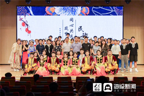 6月6日晚,一场由学生工作处、会计学院主办的“同心共远航,筑梦谱华章”民族文化晚会在圣井校区举行。晚会在维吾尔族乐队带来的歌曲《蓝宝石》中拉开帷幕,晚会分“寒木春华”“珠辉玉映”“声磐同音”三个篇章。合唱《爱我中华》用歌声诉说对祖国最深沉的爱,56个民族同根同源;56个民族的语言汇成一句话:爱我中华。民族团结、血浓于水的骨肉情深充盈于每位观众的心扉。