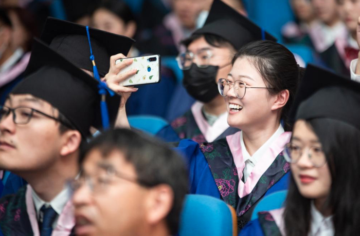 赵忠秀用三个“面对”表达了对全体毕业生的殷切期望与美好祝愿。一是面对未知、未来,不着急、不焦虑,“不驰于空想,不骛于虚声”。在这个唯变不变的时代,要把握好现在,做好手边事,走好脚下路,珍惜眼前人。