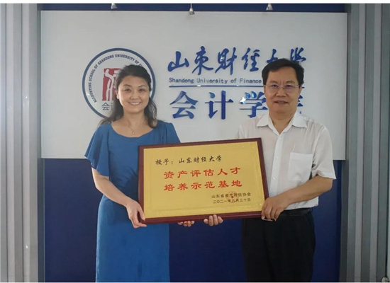 8月13日上午,资产评估人才培养示范基地挂牌仪式在山东财经大学燕山校区举行,省评协副秘书长吴蔚、培训与考试部魏浩,山东财经大学会计学院院长王爱国、资产评估系副教授刘德运参与授牌仪式。