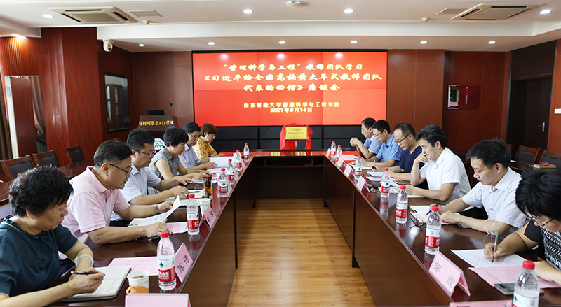 9月14日上午,山东财经大学“山东省高校黄大年式教师团队”管理科学与工程教师团队成员深入学习习近平总书记回信精神。在认真学习了习近平总书记回信,观看了黄大年事迹视频之后,大家一致表示将不负重托,学习和弘扬黄大年同志等优秀教师的高尚精神,潜心治学,铸魂育人。