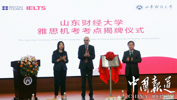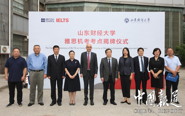 中国报道讯(尹洪臣 通讯员张艳霞)9月24日,山东财经大学雅思机考考点揭牌仪式在舜耕校区举行,山东财经大学党委书记王邵军、英国文化教育协会中国考试业务总监高飞(Nick Godfrey)为山东财经大学雅思机考考点揭牌。山东财经大学校长赵忠秀以视频方式为揭牌仪式致辞。英国文化教育协会中国考试运营总监游卓然、山东财经大学副校长张书学、陶虎出席揭牌仪式,揭牌仪式由副校长陈晓兰主持。