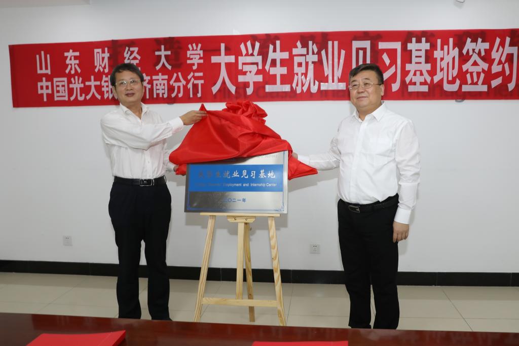 最后,韩作生、朱军共同为山东财经大学大学生就业见习基地揭牌,杨哲、黄秦代表双方签署了就业见习基地合作协议。
