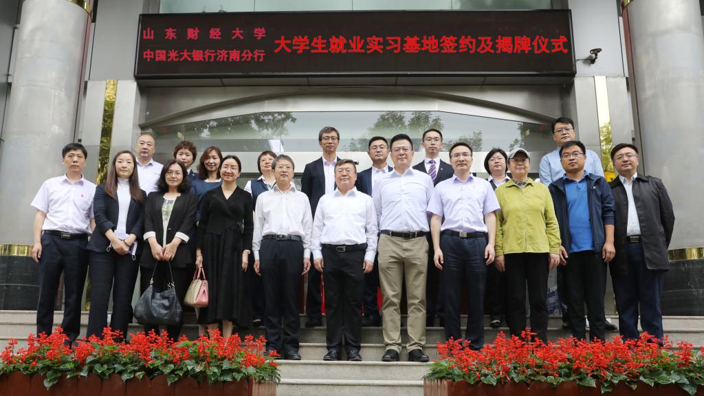 9月28日上午,山东财经大学与中国光大银行济南分行举行大学生就业见习基地签约暨揭牌仪式。校党委副书记韩作生出席仪式并讲话,就业指导处、校团委、金融学院、管理科学与工程学院和计算机科学与技术学院相关负责人、光大银行济南分行党委书记、行长朱军,副行长黄秦、人力资源部、各业务条线部门负责人和优秀校友代表出席活动。