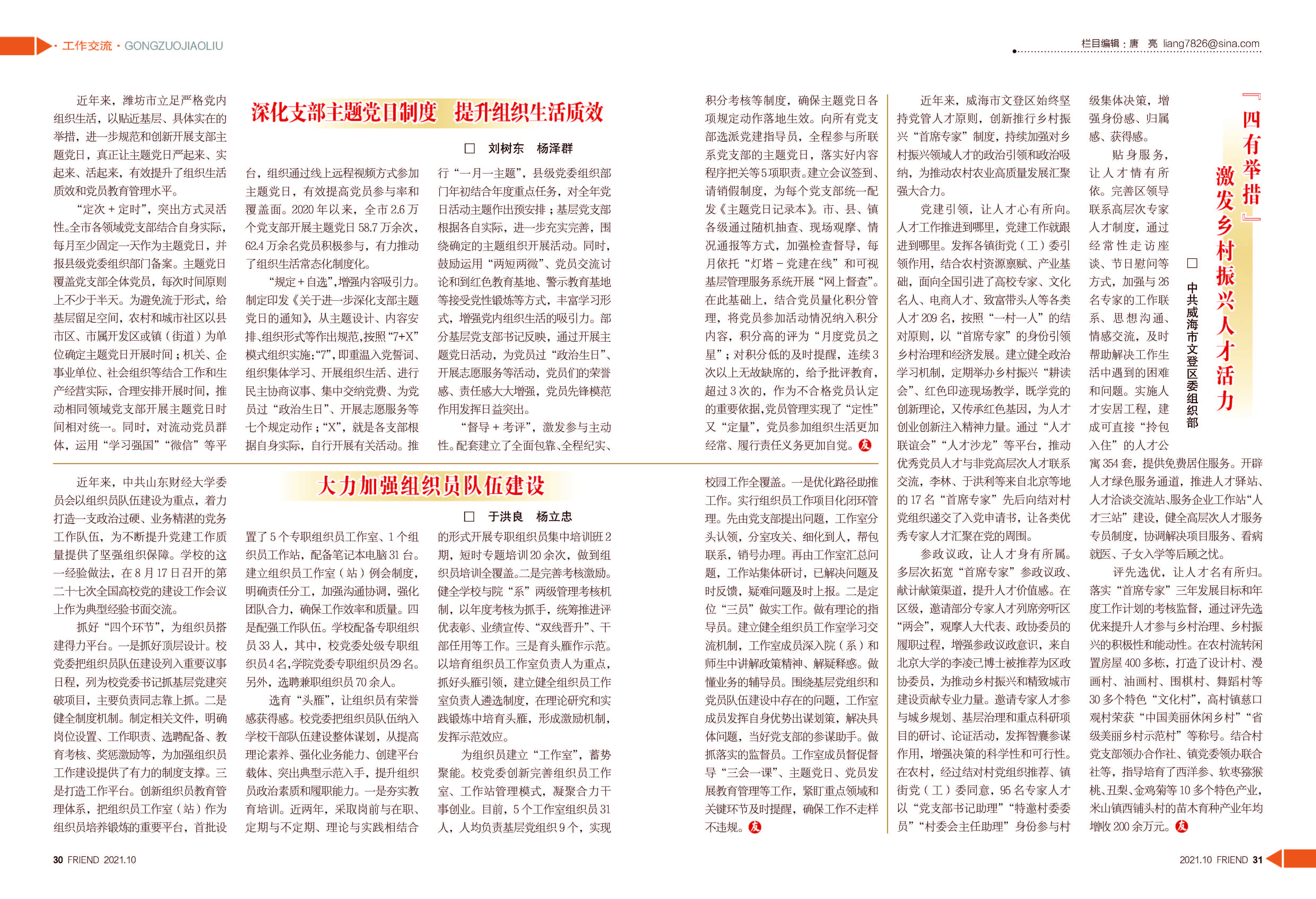 近年来,中共山东财经大学党委以组织员队伍建设为重点,着力打造一支政治过硬、业务精湛的党务工作队伍,为不断提升党建工作质量提供了坚强组织保障。学校的这一经验做法,在8月17日召开的第二十七次全国高校党的建设工作会议上作为典型经验书面交流。