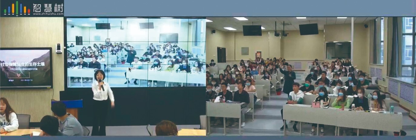 此前,在“智慧树”平台的协助下,山东财经大学与塔里木大学商定于今年9月27日、10月18日和10月27日分别开展三次直播同步授课。首次同步课堂,由课程负责人贾海彦教授为两校学生讲授《浅析社会保障制度的生存土壤——中西方思想基础的差异与交融》。贾海彦通过“自由、博爱、公平、正义”社会保障制度思想基础的四个方面,对西方和东方的道德文化认知体系进行剖析,在此基础上进一步探析新时代中国社会保障制度的理论思想。贾海彦深入浅出的讲解,给刚学习社会保障的同学们上了生动一课,也给大家呈现了整个社会保障的理论基石,两校学生都表示受益匪浅。