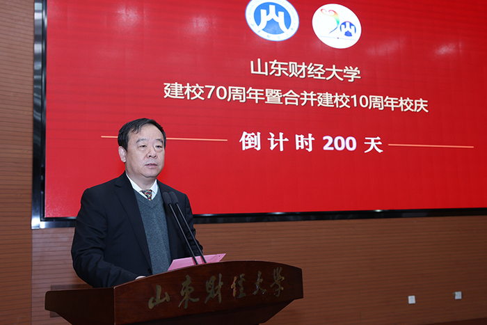 山财大党委书记王邵军在致辞中表示,倒计时200天启动,标志着校庆筹备工作将由筹备阶段正式转入冲刺阶段,各项工作进入加速度状态。他说,山财大建校70年特别是合并建校近10年的发展历程,不仅是一代代财大人筚路蓝缕、栉风沐雨的创业史,更是一代代财大人自强不息、砥砺前行的发展史;不仅是山东高等教育事业蓬勃发展的见证,也是中国高等财经教育事业逐步壮大的缩影。