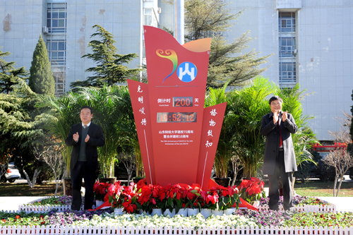 校党委书记王邵军和校长赵忠秀共同启动校庆200天倒计时钟。“今天是一个喜庆而特殊的日子。从今天算起,再过200天,也就是2022年6月9日,我们将迎来建校70周年暨合并建校10周年庆典。届时,来自全国各地、各行各业的校友和嘉宾,将聚首泉城,欢聚母校,共襄盛会、共叙友情、共谋学校发展。这必将成为山东财经大学发展史上一个令人欢欣鼓舞、难以忘怀的荣耀时刻!”王邵军说,山东财经大学建校70年特别是合并建校近10年的发展历程,不仅是一代代财大人筚路蓝缕、栉风沐雨的创业史,更是一代代财大人(包括一代代校友们)自强不息、砥砺前行的发展史;不仅是山东高等教育事业蓬勃发展的见证,也是中国高等财经教育事业逐步壮大的缩影。