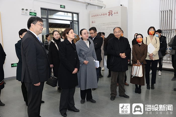 揭牌仪式后,潘绮瑞一行在赵忠秀、副校长陶虎陪同下参观了山东财经大学海岱美术馆和大学生创业园。