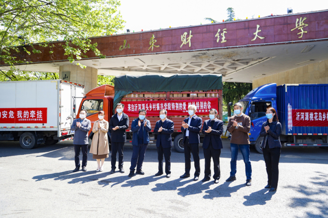 董方军表示,作为财大人,对母校的培育之恩当涌泉相报,用实际行动与学弟学妹们共同抗疫。乡村振兴学院作为山东财经大学创新型前沿学院,是文化振兴乡村的典范。愿爱心能温暖每一位学子的心灵,愿母校优秀文化传承能够代代相传生生不息。