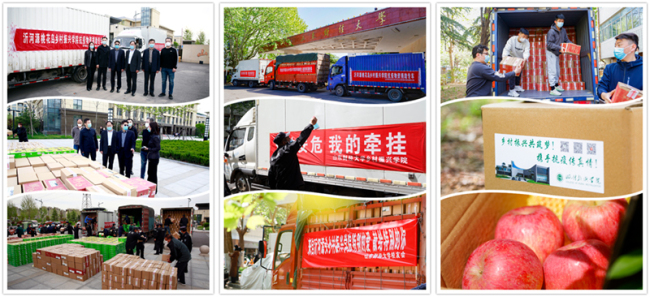 4月15日至17日,山东省政协常委、沂河源田园综合体项目发起人,山东财经大学乡村振兴学院院长董方军为封闭在校的学弟学妹捐赠15万斤“沂源红”苹果,助力学校疫情防控。党委书记王邵军代表学校接受捐赠,副校长张书学、张新参加捐赠活动。