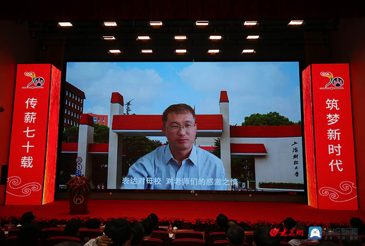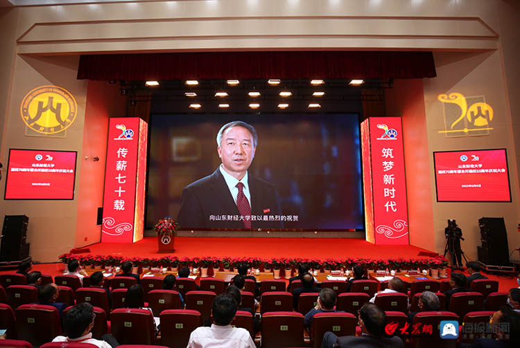 庆祝大会上,山东财经大学原校长、现任西南财经大学校长、党委副书记卓志,达尔豪斯大学校长迪普•赛尼等国(境)内外高校代表发来祝贺视频,回顾了与山东财大的交流合作,祝愿山财大继往开来矢志不渝,未来更加美好。