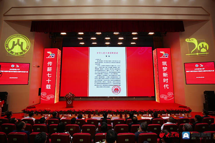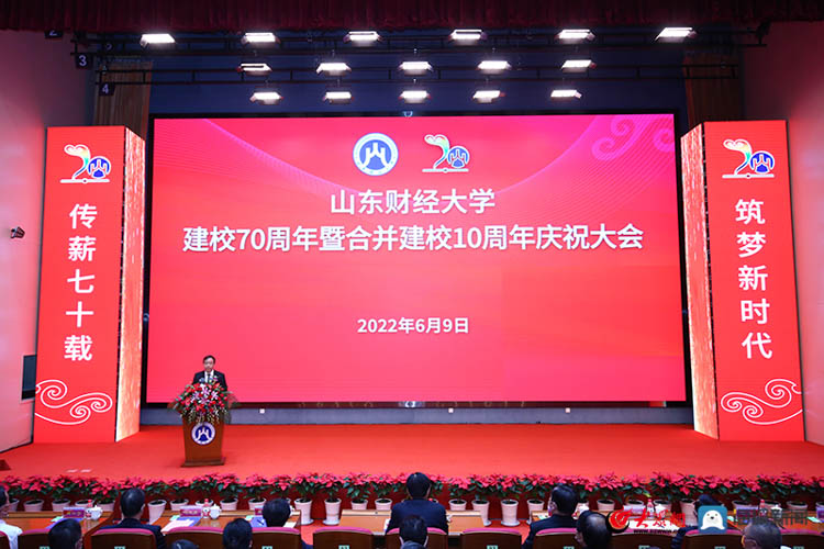 6月9日,庆祝山东财经大学建校70周年暨合并建校10周年大会在圣井校区图书馆报告厅举行。
