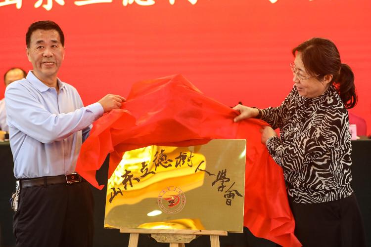 张伟红和姜波为山东立德树人学会揭牌。