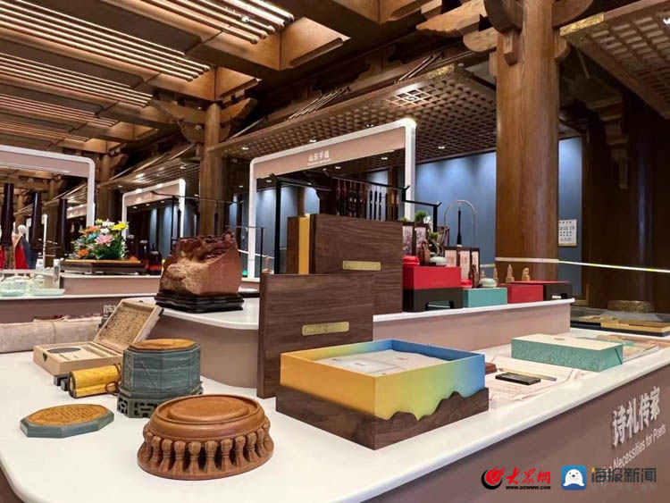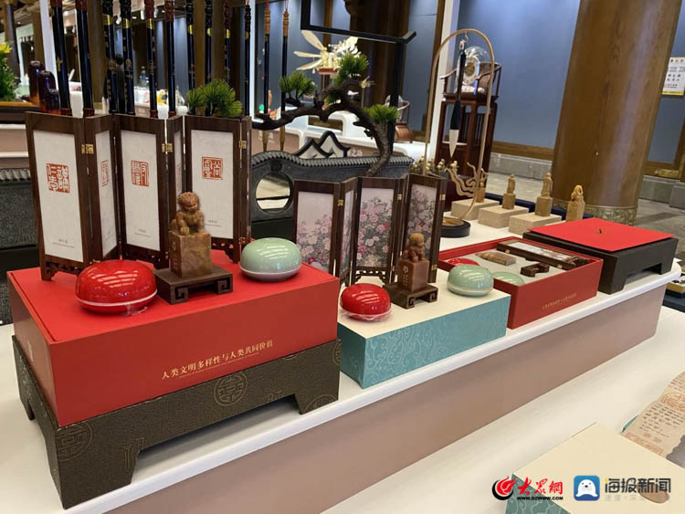 9月26日上午,第八届尼山世界文明论坛— “中华手造·山东手造”精品展在山东曲阜启动,由山东财经大学艺术学院师生创作团队主创完成的“第八届尼山世界文明论坛”伴手礼正式亮相展出。