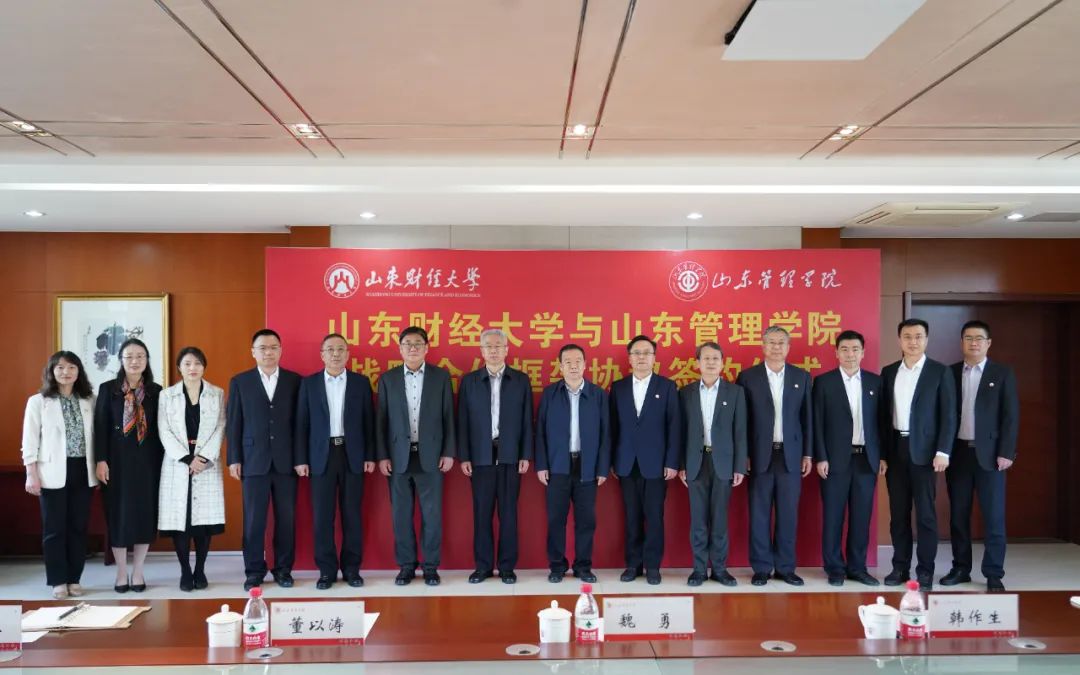 山东财经大学副校长张新与山东管理学院副院长董以涛代表双方签署了战略合作框架协议书。