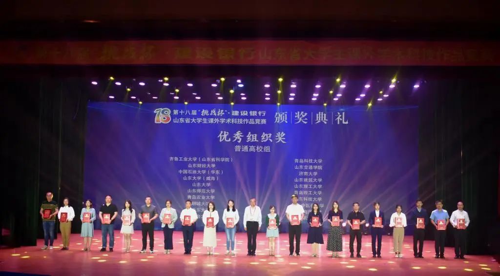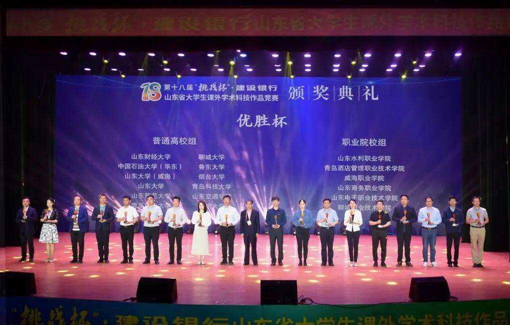 5月22日,第十八届“挑战杯”建设银行山东省大学生课外学术科技作品竞赛决赛在齐鲁工业大学(山东省科学院)落下帷幕。山东财经大学学生作品获特等奖5项、一等奖5项、二等奖10项、三等奖1项,并获得优胜杯和优秀组织奖。本届大赛,学校推报省赛作品数量、入围省赛决赛作品数量、省赛获奖数量均为全省高校首位,总成绩位列全省高校第二位,再创历史佳绩。