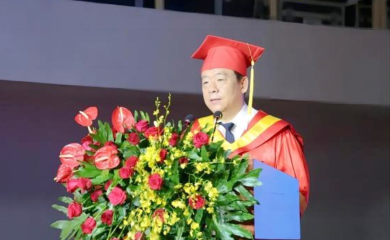 山东财经大学党委书记王邵军在2023届毕业典礼上讲话。校方供图