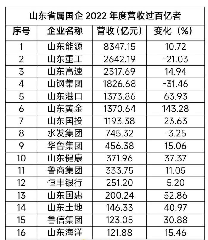 2022年,国际国内发展环境复杂多变,疫情影响严重,在这样的情况下,山东32家省属国企去年总营收达22216.5亿元,公布净利润数据的30家企业净赚675.67亿元,说明山东国有企业的“抗压能力”还是很不错的。