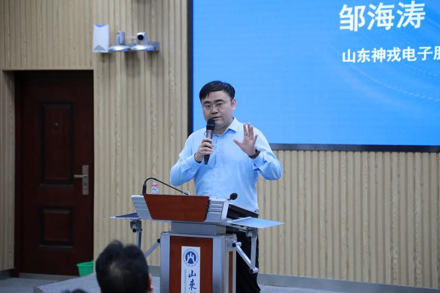 启动仪式后,山东神戎电子股份有限公司董事长邹海涛作了题为《新时代企业家精神与科技型企业新使命》的主题演讲。他指出,爱国是新时代企业家的大义所在,企业家要心怀“国之大者”,自觉将企业行动融入国家发展大局,与国家战略和区域发展同频共振。神戎电子将紧跟时代步伐,聚焦高端化、智能化、绿色化,推进企业转型升级,为实现高水平科技自立自强、促进经济高质量发展作出更大贡献。